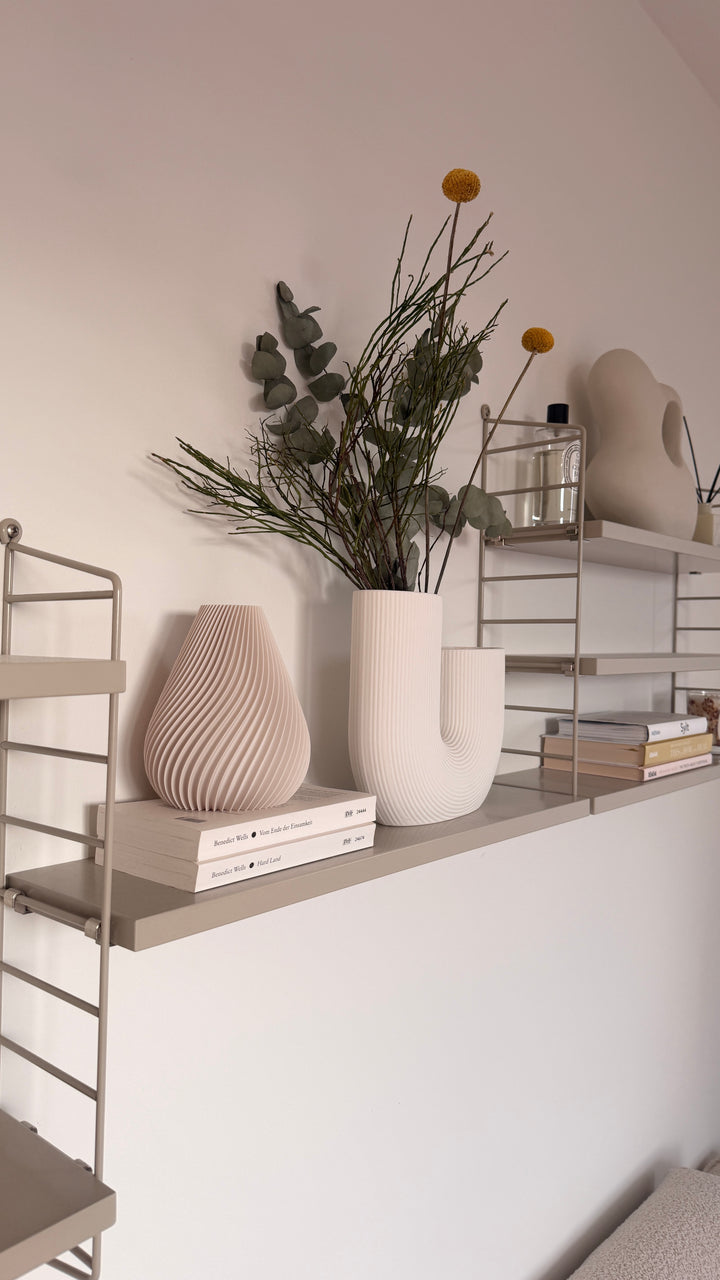 Die Yuna Vase bringt organische Einzigartigkeit in dein Zuhause. Ihre geschwungene Form wirkt wie von Hand geformt und strahlt eine zeitlose Eleganz aus, die dennoch auffällt.